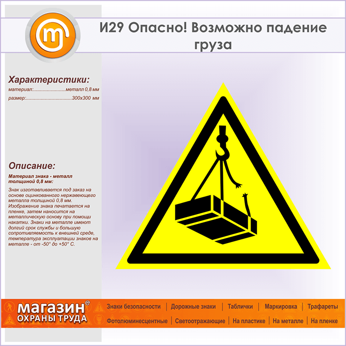 Знак «Опасно! Возможно падение груза», И29 (металл, сторона 300 мм) в Ульяновске купить