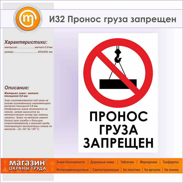 Знак «Пронос груза запрещен», И32 (металл, 600х900 мм) в Ульяновске купить