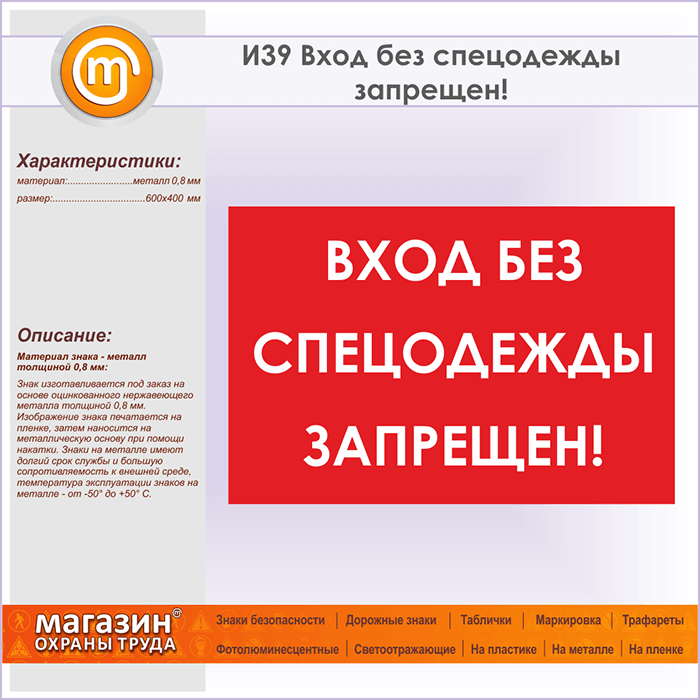 Знак «Вход без спецодежды запрещен!», И39 (металл, 600х400 мм) в Ульяновске купить