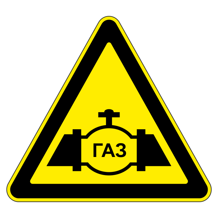 Знак «Осторожно газопровод», МГ-2 (металл 0,8 мм, I типоразмер: сторона 700 мм, С/О пленка: тип В алмазная) в Ульяновске купить