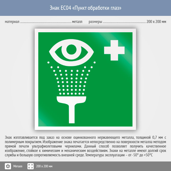 Знак EC04 «Пункт обработки глаз» (металл, 200х200 мм) в Ульяновске купить
