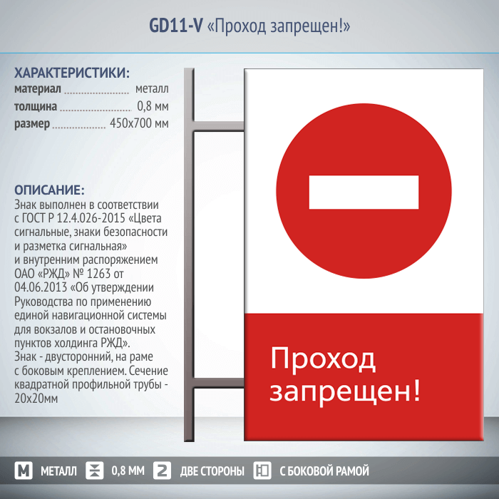 Знак «Проход запрещен!», GD11-V (двусторонний вертикальный, 450х700 мм, металл, на раме с боковым креплением) в Ульяновске купить