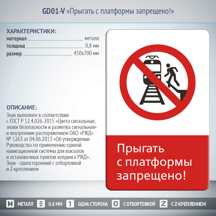 Знак «Прыгать с платформы запрещено!», GD01-V (односторонний вертикальный, 450х700 мм, металл, с отбортовкой и Z-креплением) в Ульяновске купить