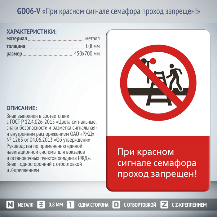 Знак «При красном сигнале семафора проход запрещен!», GD06-V (односторонний вертикальный, 450х700 мм, металл, с отбортовкой и Z-креплением) в Ульяновске купить