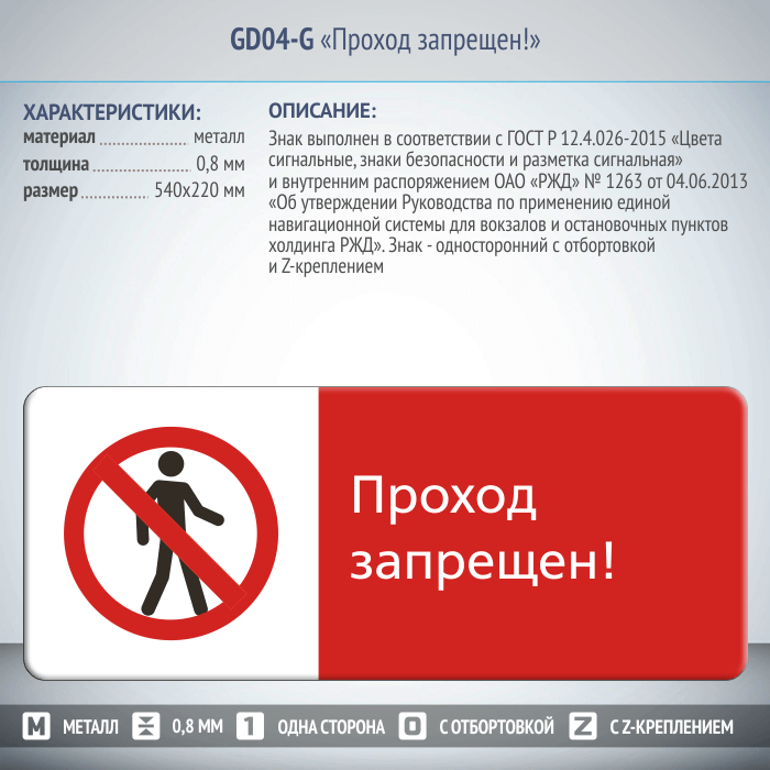 Знак «Проход запрещен!», GD04-G (односторонний горизонтальный, 540х220 мм, металл, с отбортовкой и Z-креплением) в Ульяновске купить