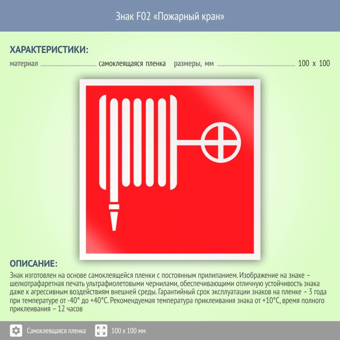 Знак F02 «Пожарный кран» (пленка, 100х100 мм) в Ульяновске купить