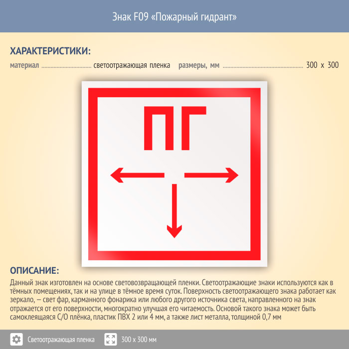 Знак F09 «Пожарный гидрант» (светоотражающая пленка, 300х300 мм) в Ульяновске купить