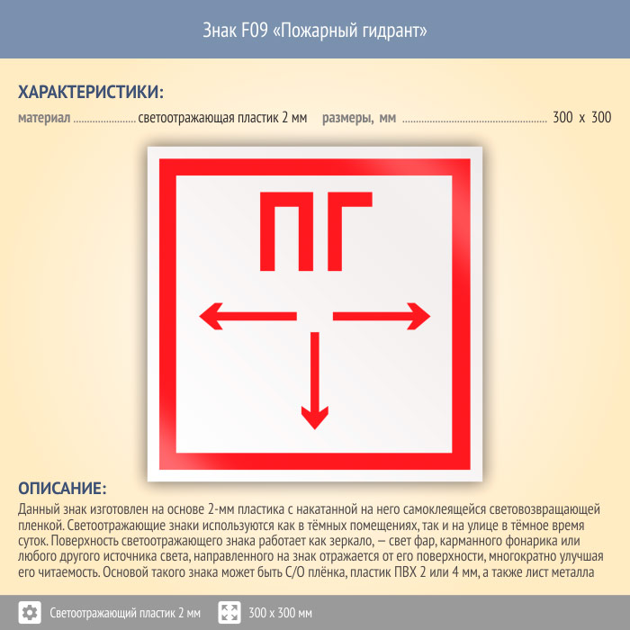 Знак F09 «Пожарный гидрант» (светоотражающий пластик, 300х300 мм) в Ульяновске купить