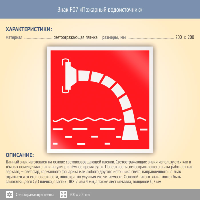 Знак F07 «Пожарный водоисточник» (светоотражающая пленка, 200х200 мм) в Ульяновске купить