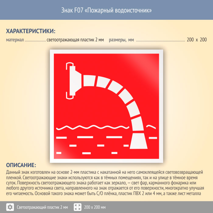 Знак F07 «Пожарный водоисточник» (светоотражающий пластик, 200х200 мм) в Ульяновске купить