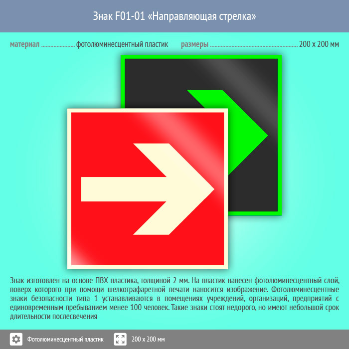 Знак F01-01 «Направляющая стрелка» (фотолюминесцентный пластик, 200х200 мм) в Ульяновске купить
