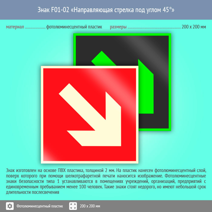 Знак F01-02 «Направляющая стрелка под углом 45°» (фотолюминесцентный пластик, 200х200 мм) в Ульяновске купить