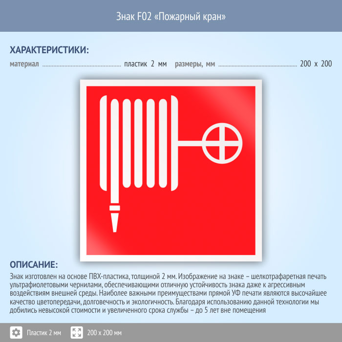 Знак F02 «Пожарный кран» (пластик, 200х200 мм) в Ульяновске купить