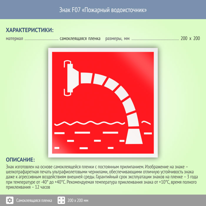 Знак F07 «Пожарный водоисточник» (пленка, 200х200 мм) в Ульяновске купить