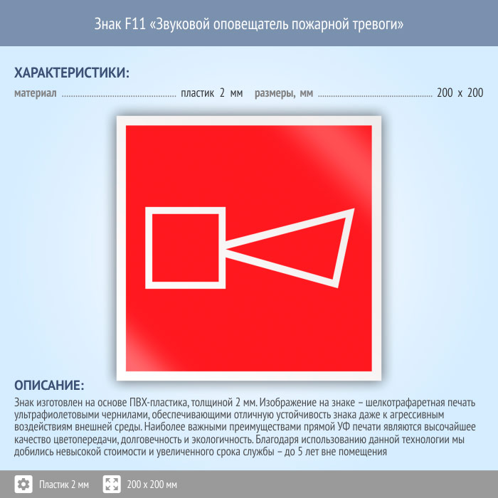 Знак F11 «Звуковой оповещатель пожарной тревоги» (пластик, 200х200 мм) в Ульяновске купить