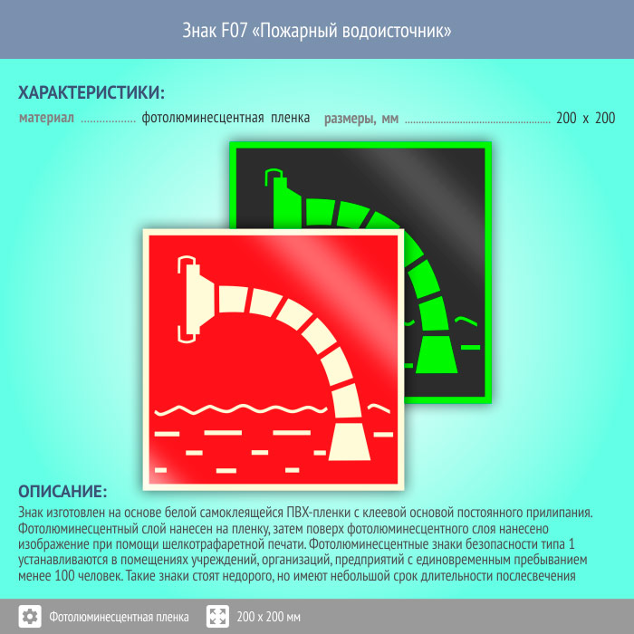 Знак F07 «Пожарный водоисточник» (фотолюминесцентная пленка, 200х200 мм) в Ульяновске купить