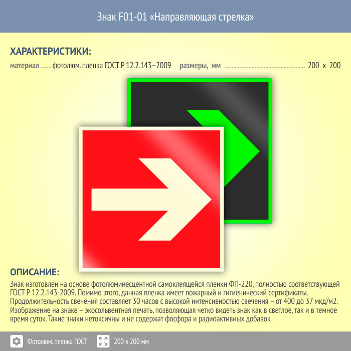 Знак F01-01 «Направляющая стрелка» (фотолюминесцентная пленка ГОСТ 34428-2018, 200х200 мм) в Ульяновске купить