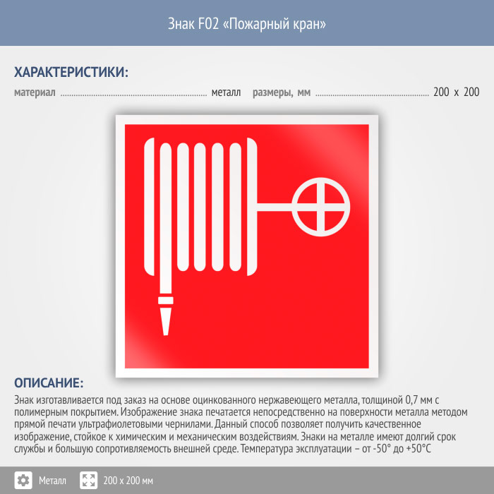 Знак F02 «Пожарный кран» (металл, 200х200 мм) в Ульяновске купить