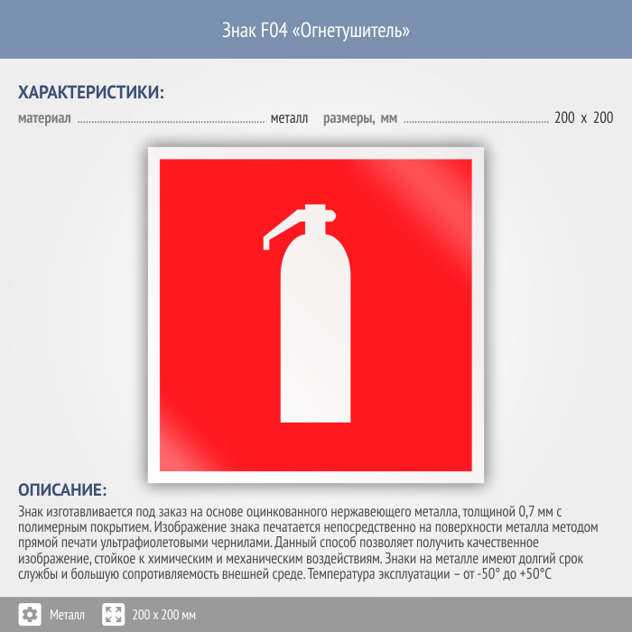 Знак F04 «Огнетушитель» (металл, 200х200 мм) в Ульяновске купить