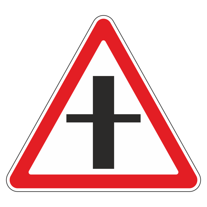Дорожный знак 2.3.1 «Пересечение со второстепенной дорогой» (металл 0,8 мм, III типоразмер: сторона 1200 мм, С/О пленка: тип В алмазная) в Ульяновске купить