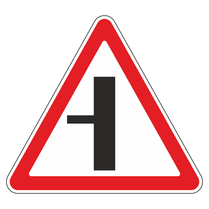 Дорожный знак 2.3.3 «Примыкание второстепенной дороги слева» (металл 0,8 мм, III типоразмер: сторона 1200 мм, С/О пленка: тип А коммерческая) в Ульяновске купить