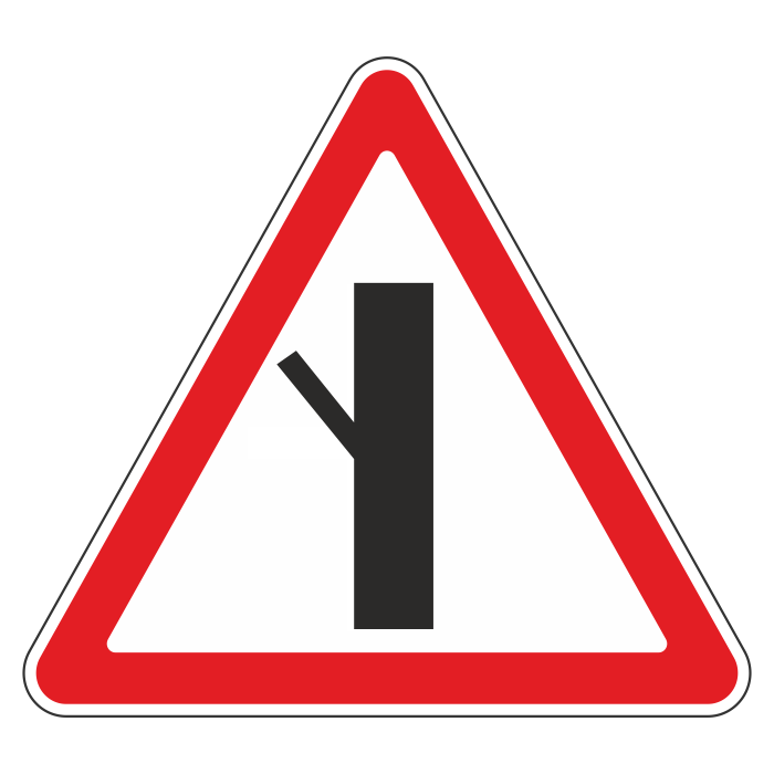 Дорожный знак 2.3.5 «Примыкание второстепенной дороги слева» (металл 0,8 мм, I типоразмер: сторона 700 мм, С/О пленка: тип Б высокоинтенсивная) в Ульяновске купить