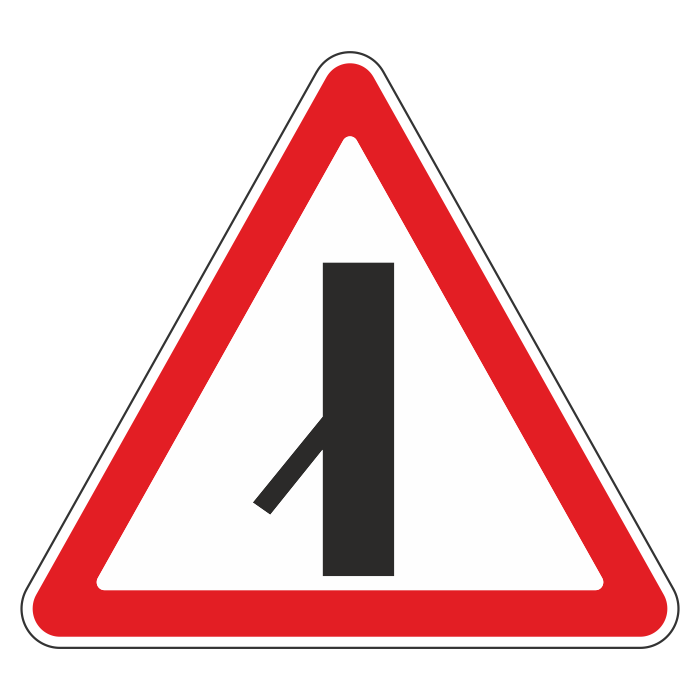 Дорожный знак 2.3.7 «Примыкание второстепенной дороги слева» (металл 0,8 мм, II типоразмер: сторона 900 мм, С/О пленка: тип А коммерческая) в Ульяновске купить